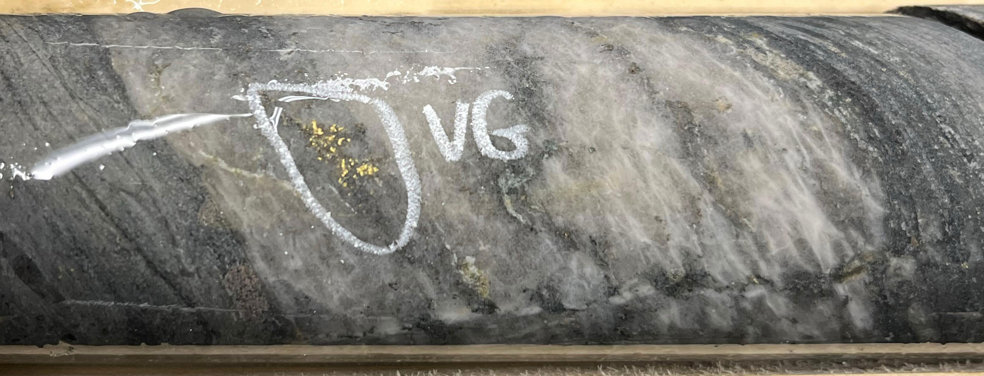 Over 100 counts of visible gold recorded on surface across 30+ mapped veins. Recent grab samples returned 145 g/t Au and 111 g/t Au.