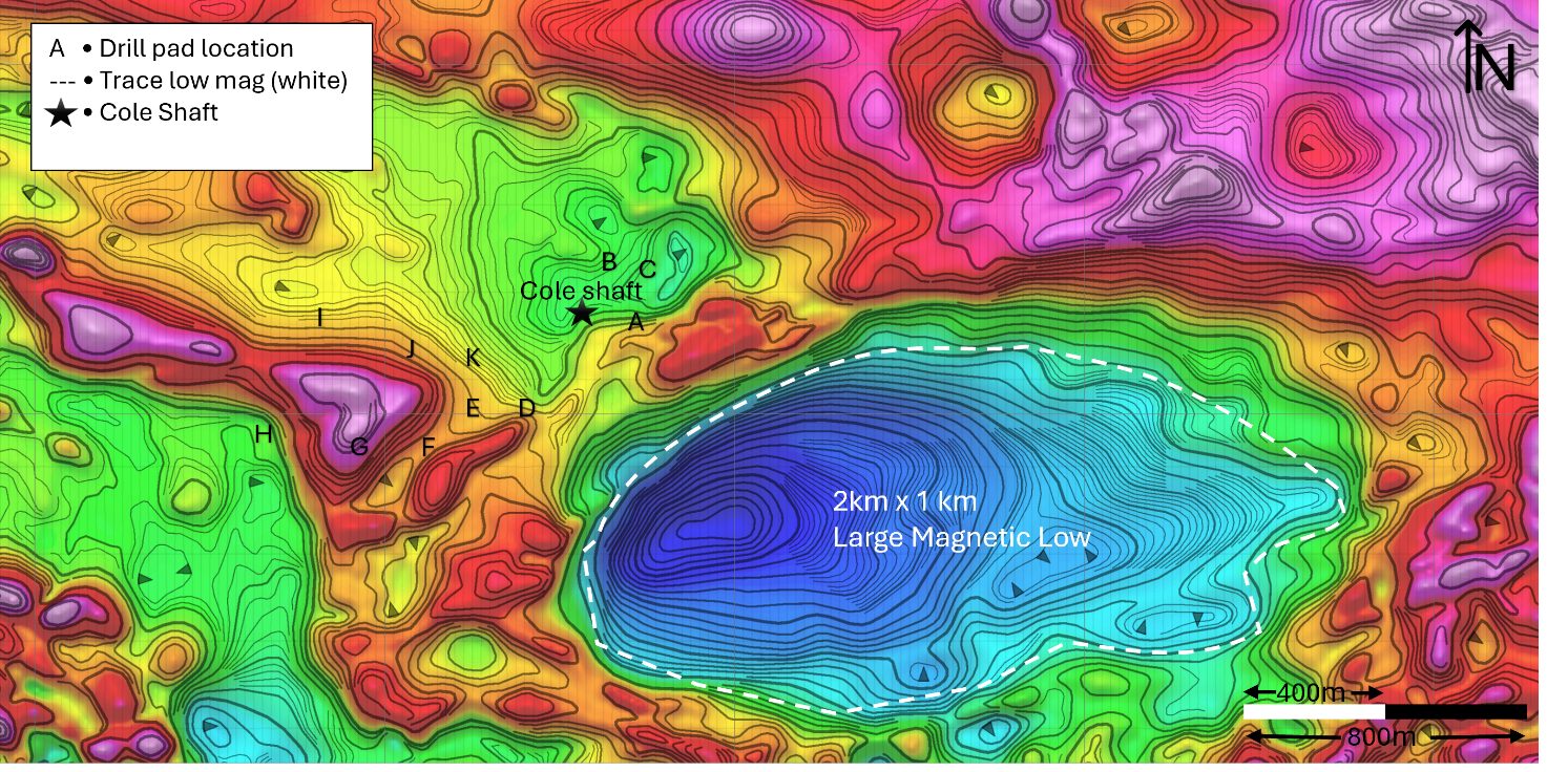 "What this program has returned is extraordinary - not just in terms of the visible gold we have observed in drilling, but in what it tells us about the scale and complexity of the system at Cole. We set out to confirm gold at the Cole mine, test the rheological contact, and follow up on our high-grade surface samples. We accomplished all three. Importantly, we have identified new veins, broader alteration systems than we knew existed, and now a compelling dome-style target defined by airborne magnetics that points to a structurally complex, potentially district-scale gold system. Cole Gold Mines sits in one of the most prolific gold districts on Earth, and we believe we have only scratched the surface of what this property holds. We look forward to reporting assay results as they are received."